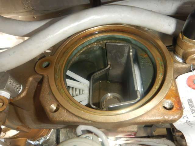 水道水の塩素によりゴムが劣化し、ダイヤフラム(隔膜)のゴムの一部が剥がれている状態でした。